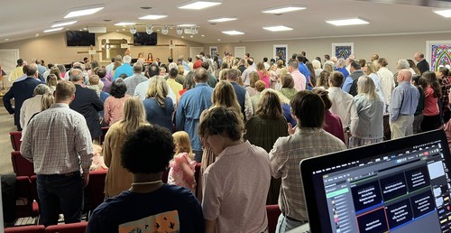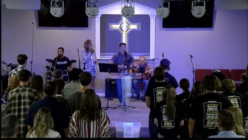 The praise team meets each Wednesday in the main sanctuary for practice.